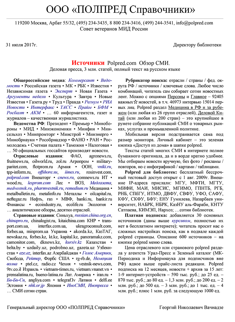 Библиотека с доступом к Polpred.com Обзор СМИ